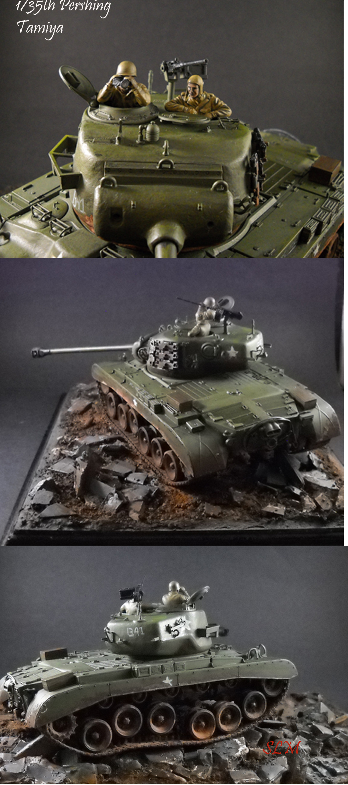 This is my first tank build. I painted this in oils and acrylics and used weathering powder mixed with alcohol for the mud. The base I threw together with a mix of Celluclay, white glue, and the bricks and rubble I made from dental stones and plasters from work.